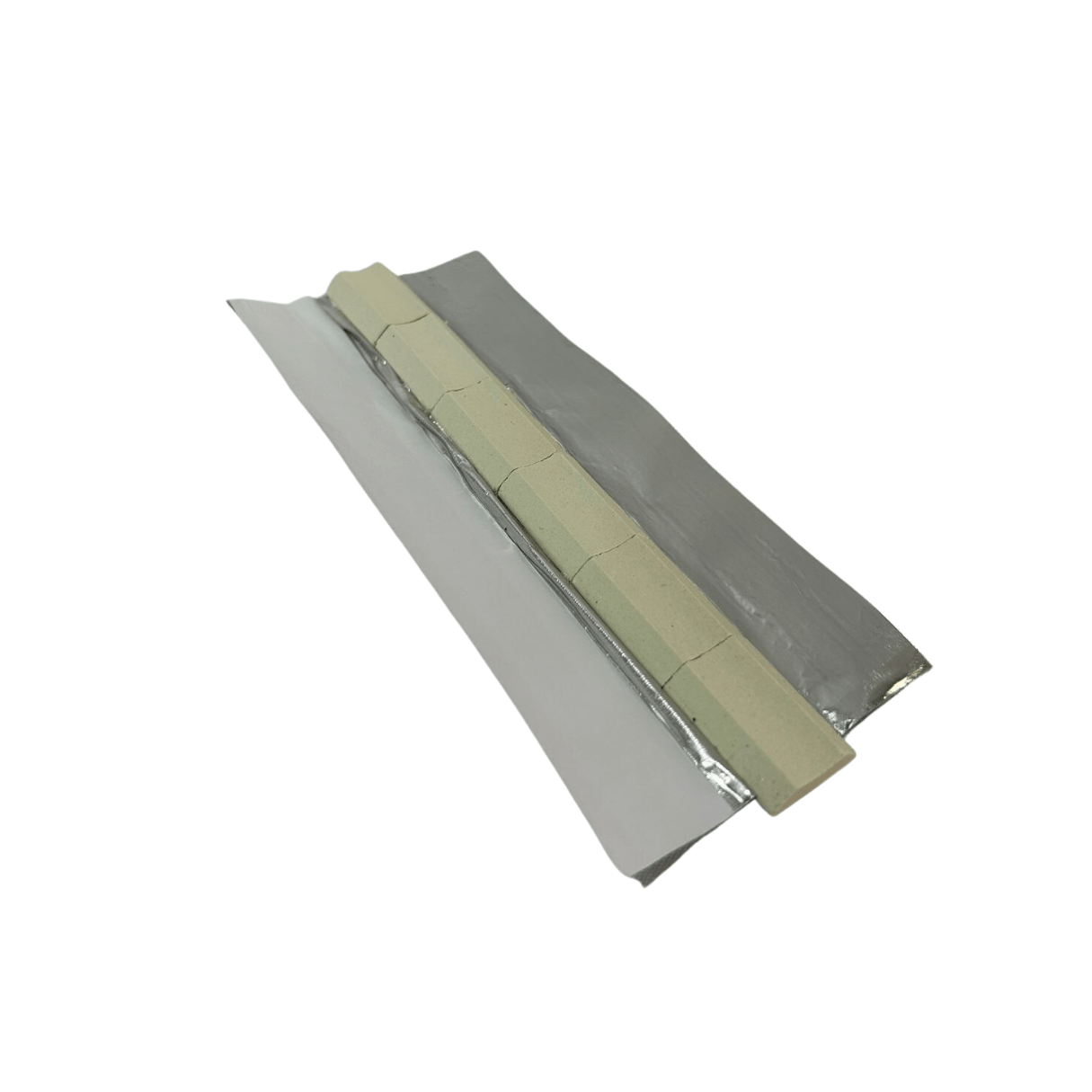 O Backing cerâmico é composto por uma lâmina de alumínio adesiva e por um material cerâmico com formato adequado ao tipo de junta a ser soldada.