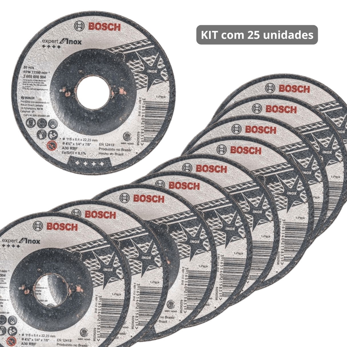 Kit com 25 Discos de Desbaste Bosch Expert for Inox 115x6,4mm Deprimido