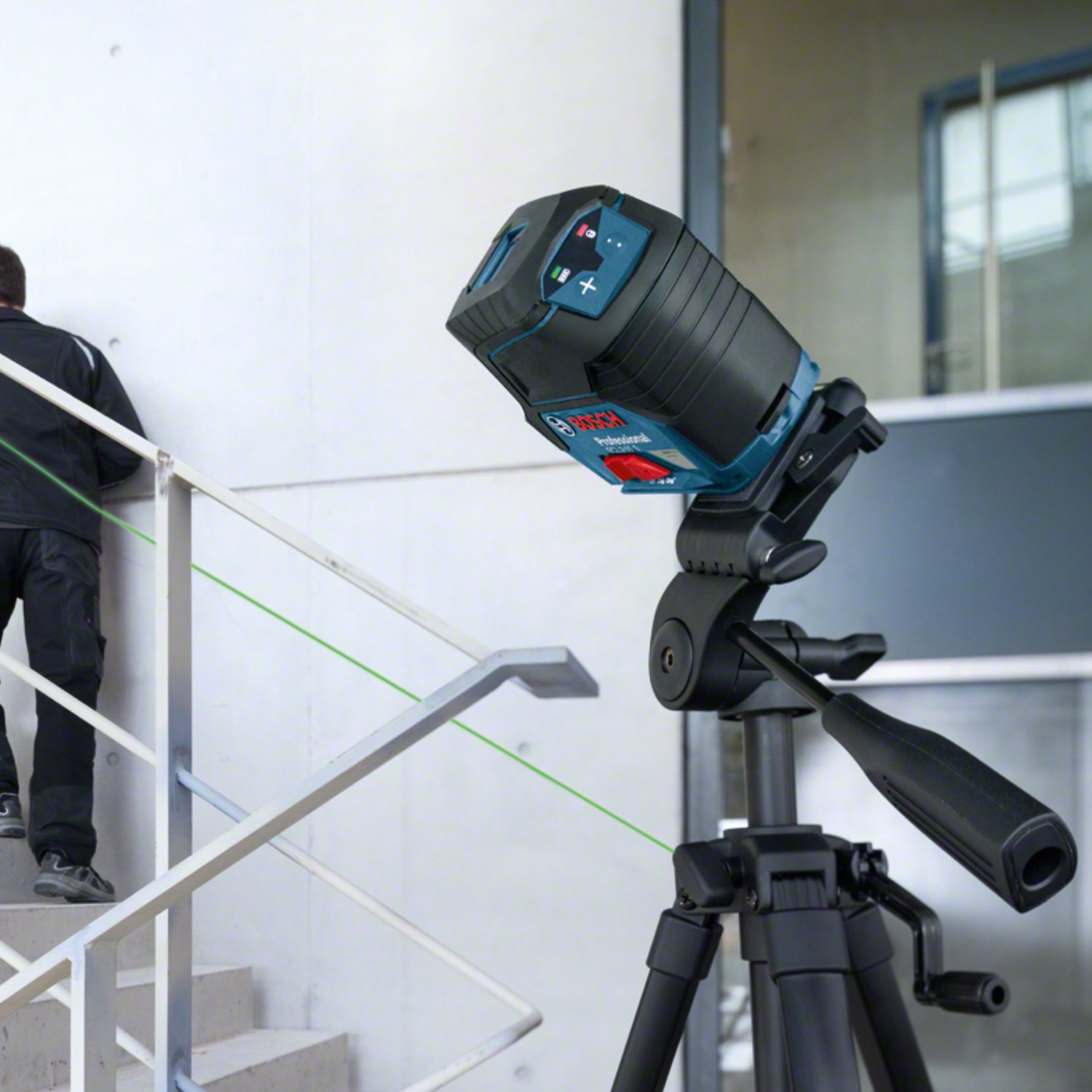 O nível a laser verde Bosch GCL 2-15 G é o primeiro nível de laser verde 4X mais visível e com linhas e pontos de prumo e alcance de 15 metros.