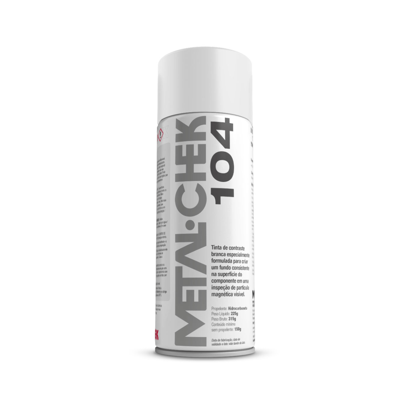 O CONTRASTE 104 é uma tinta de contraste branca de secagem rápida especialmente formulada para criar um fundo consistente na superfície do componente em uma inspeção de partícula magnética visível.