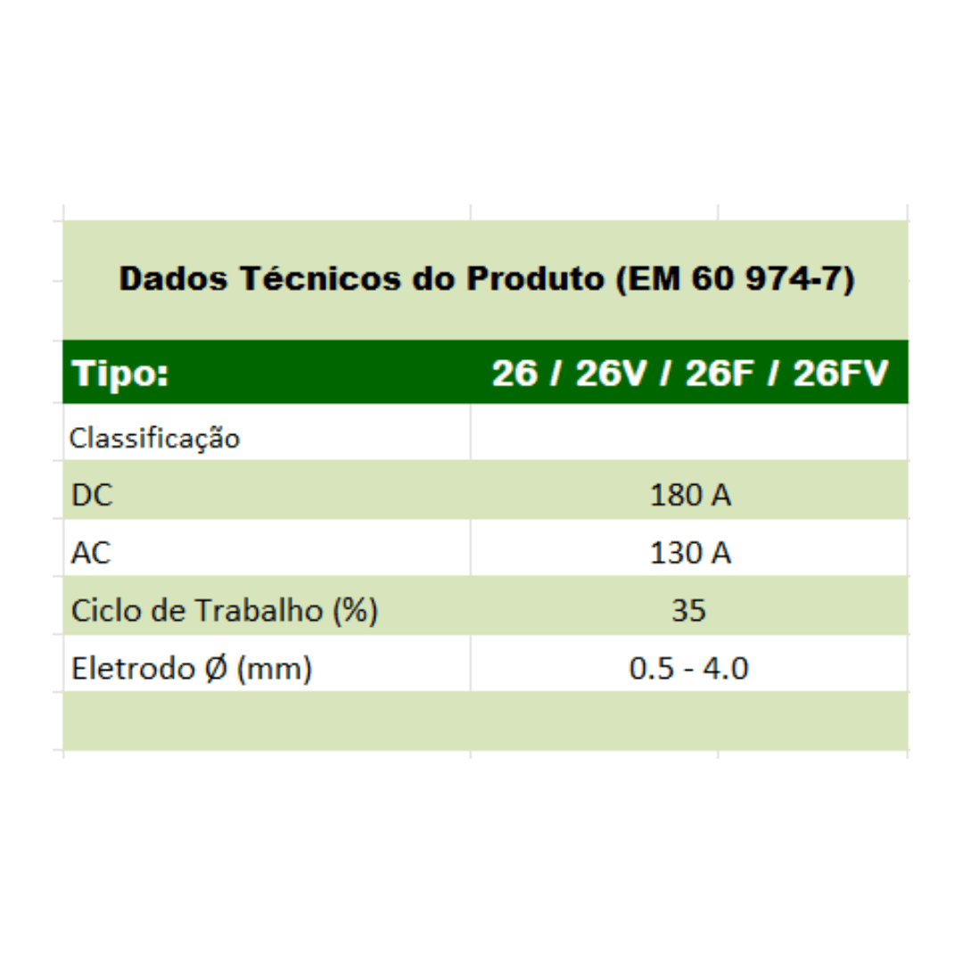 • Capacidade: 180 A DC e 130 A AC